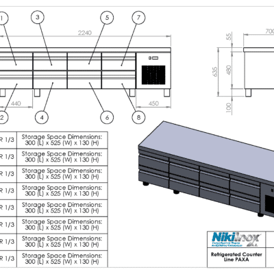 Ψυγειο πάγκος χαμηλού ύψους συντήρησης με 3 πόρτες GN 1/1, P-XA-179M με ενσωματωμένο ψυκτικό μηχάνημα Niki Inox