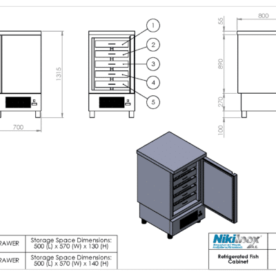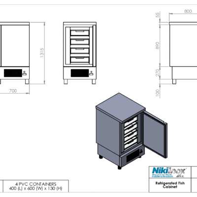 Ψυγείο θάλαμος αποθήκη ψαριών χαμηλό με 5 εσωτερικά συσρτάρια TH PS 070ΚS Niki Inox