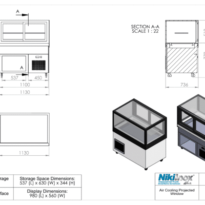 Ψυγείο βιτρίνα γλυκών με ουδέτερη αποθήκη BI-ZR-110 Niki Inox.