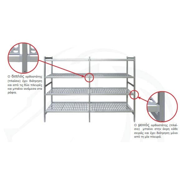 - Σχεδιασμένα με ομαλά, στρογγυλεμένα προφίλ ανοδιωμένου αλουμινίου και πλαστικές σχάρες από πολυπροπυλένιο, τα ράφια αυτά καθαρίζονται εύκολα και πληρούν αυστηρά πρότυπα υγιεινής.