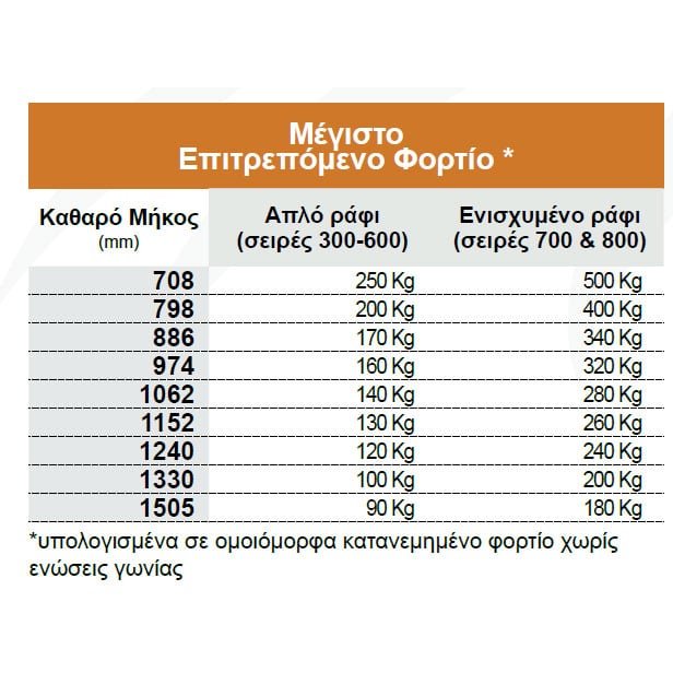 - 2 τύπους επιφάνειας ραφιών: απλή και ενισχυμένη
