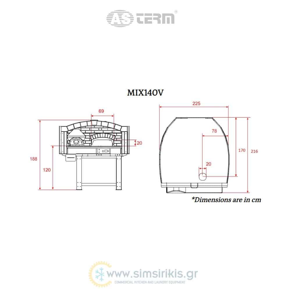 Χτιστός υβριδικός φούρνος πίτσας (αερίου-ξύλου) με στατικό πάτωμα, MIX-V Asterm