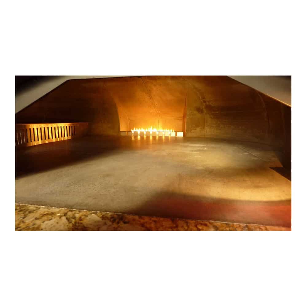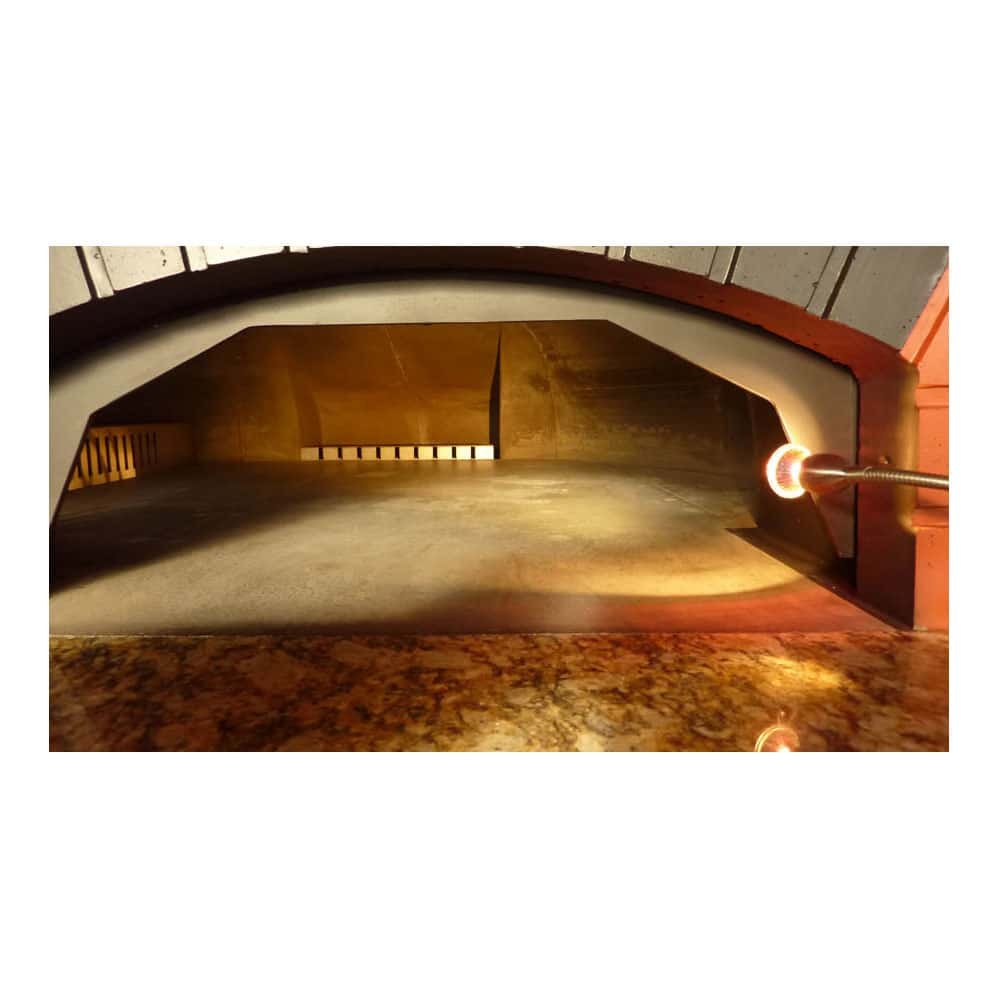 - Ο καυστήρας υγραερίου ή φυσικού αερίου, προσφέρει ομοιόμορφη θερμοκρασία στο εσωτερικό του φούρνου πλήρως ελεγχόμενη από τον χρήστη. Βρίσκεται στο πίσω μέρος του θαλάμου και προσφέρει υψηλή αισθητική καθώς είναι ορατός όταν η πόρτα είναι ανοιχτή.