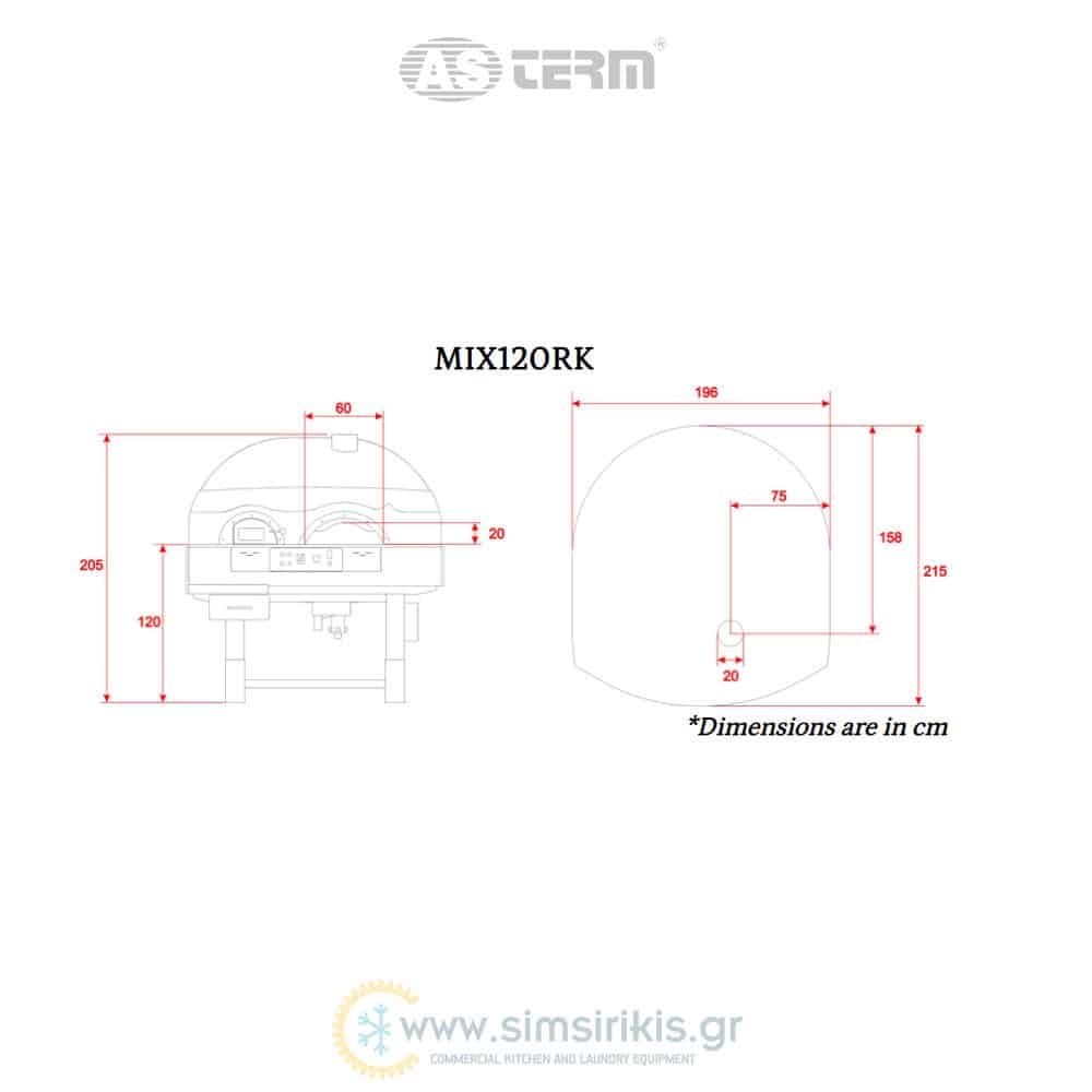 Χτιστός υβριδικός φούρνος πίτσας (αερίου-ξύλου) περιστροφικός, MIX-120RK Asterm