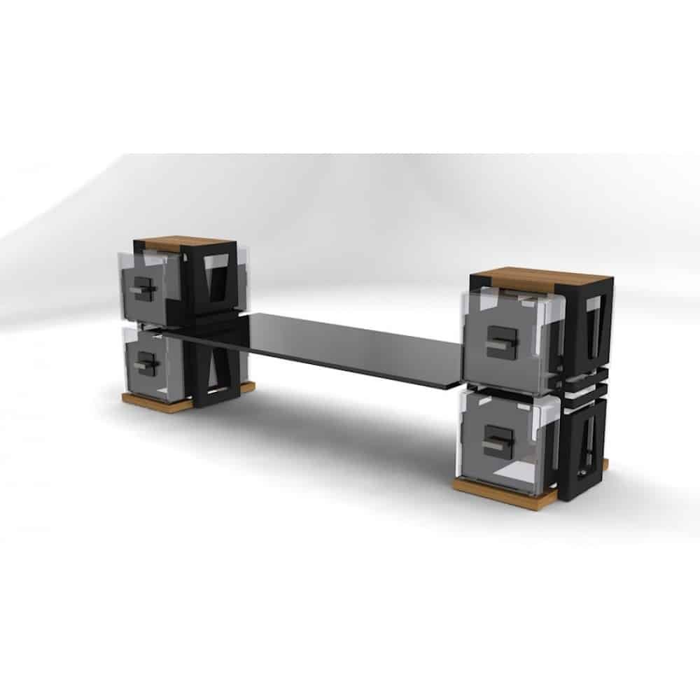 Διπλή συρταριέρα Atrax με βάση και καπάκι μασίφ οξιά συστήματος Buffet Puzzle