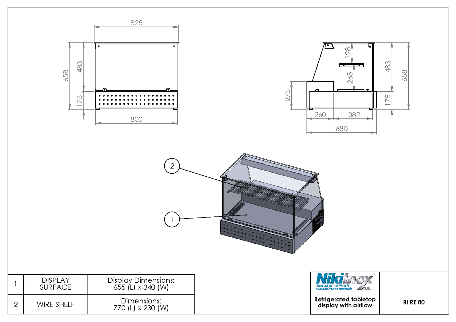 Επιτραπέζιο ψυγείο βιτρίνα BI-RE-80 Niki Inox