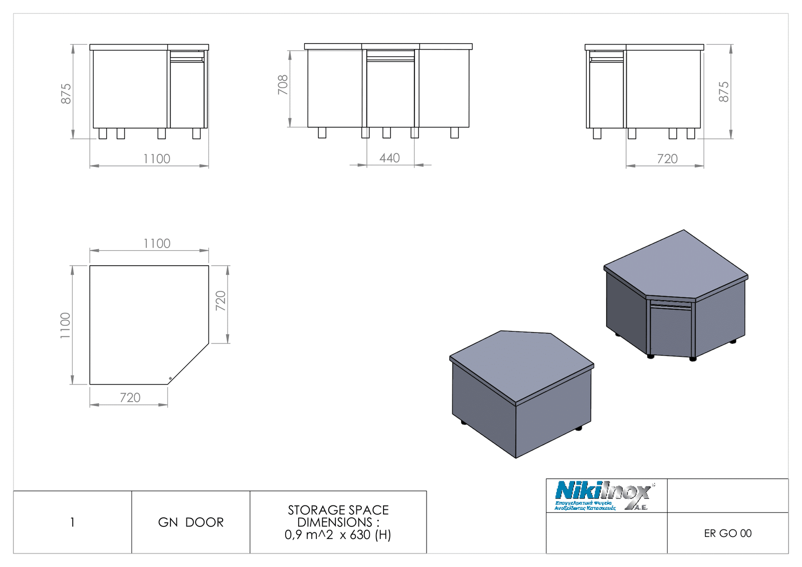 Ερμάριο γωνιακό με ανοιγόμενη πόρτα Gastronorm