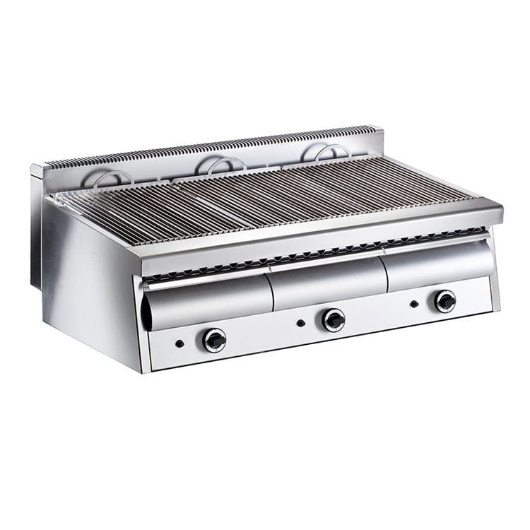 • Με συρτάρι νερού κάτω από τους καυστήρες, ώστε να λειτουργεί ως λιποσυλλέκτης για την αποφυγή δυσάρεστων καπνών και φλογών και για να διατηρούν τα κρέατα τους χυμούς τους.