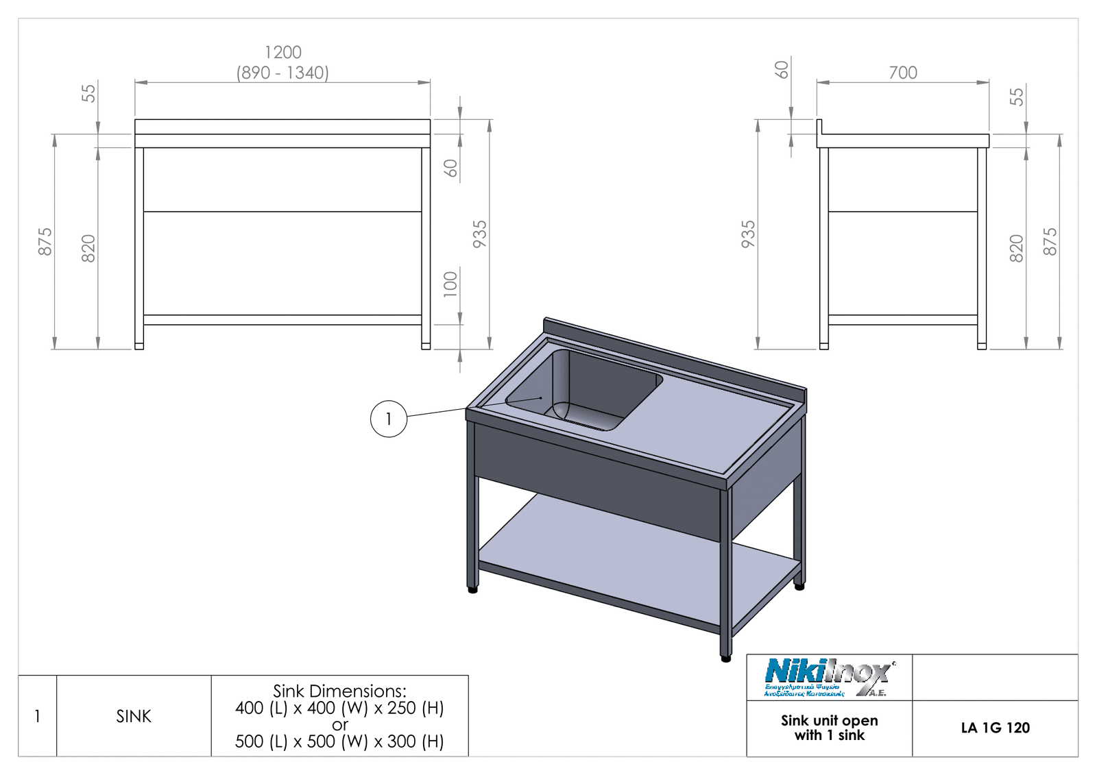 | Μήκος mm | 1200, 1340, 890 |