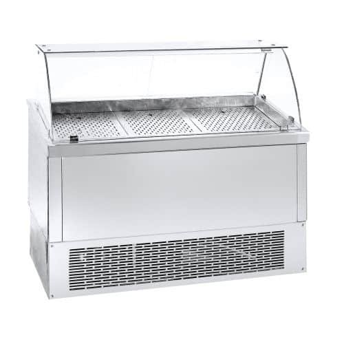 • Βιτρίνα με φωτισμό σε όλο το μήκος, με διάτρητη επιφάνεια και αποχέτευση.