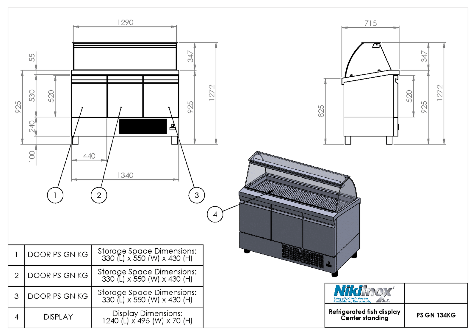 Ψυγείο εκθετήριο ψαριών κέντρου με ψυχώμενη αποθήκη PS-GN-134KG Niki Inox