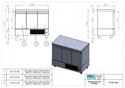 Ψυγείο πάγκος αποθήκη ψαριών με 3 πόρτες PS GN134K Niki Inox