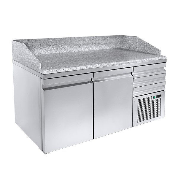 • Τα ψυγεία πάγκοι πίτσας με φαρδιές πόρτες και επιφάνεια από γρανίτη, είναι ιδανικά για πιτσαρίες. Δέχονται πλαστικά τελάρα πίτσας 60×40εκ. για το έτοιμα ζυμάρια