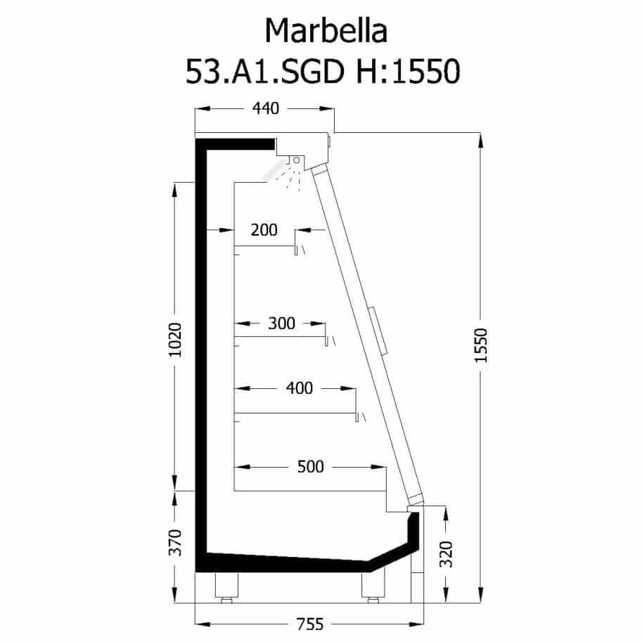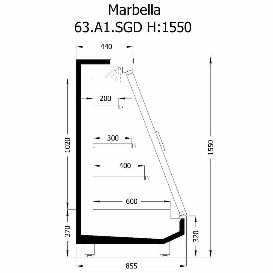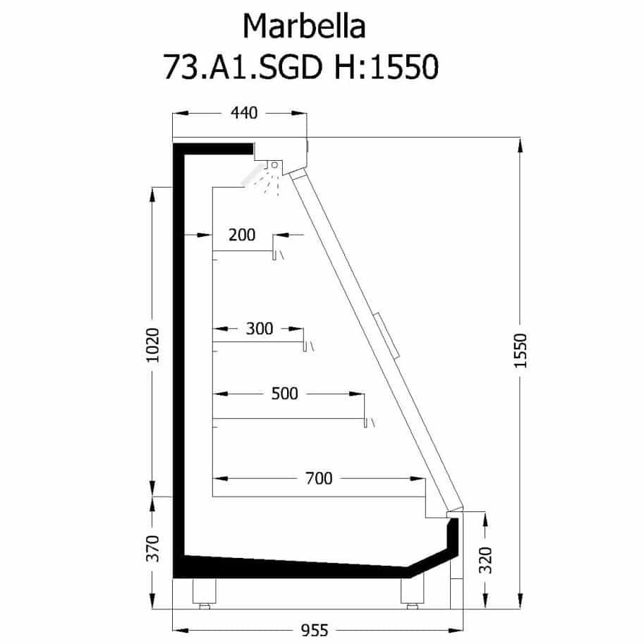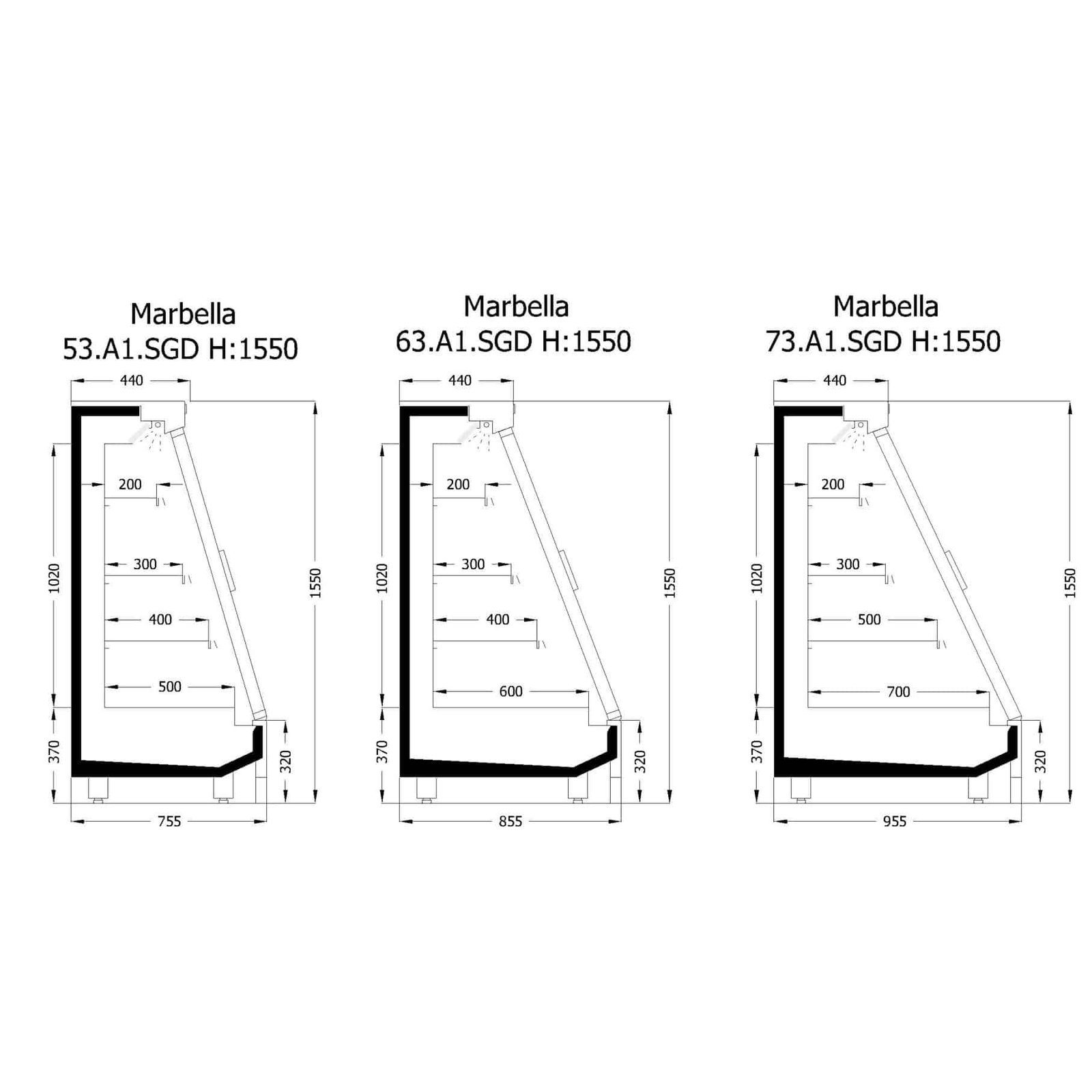 Ψυγείο Self Service χαμηλό ύψος 1,55μ. με υποδομή για απομακρυσμένο ψυκτικό μηχάνημα, με συρόμενες πόρτες, Marblella SDG, Inanc