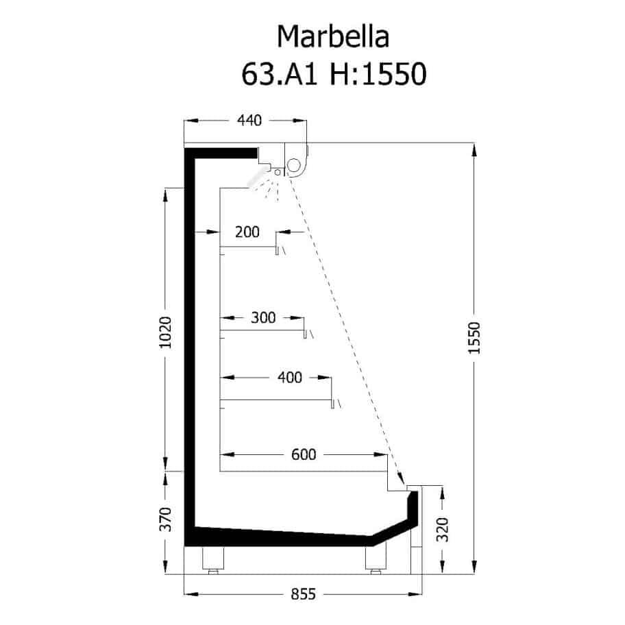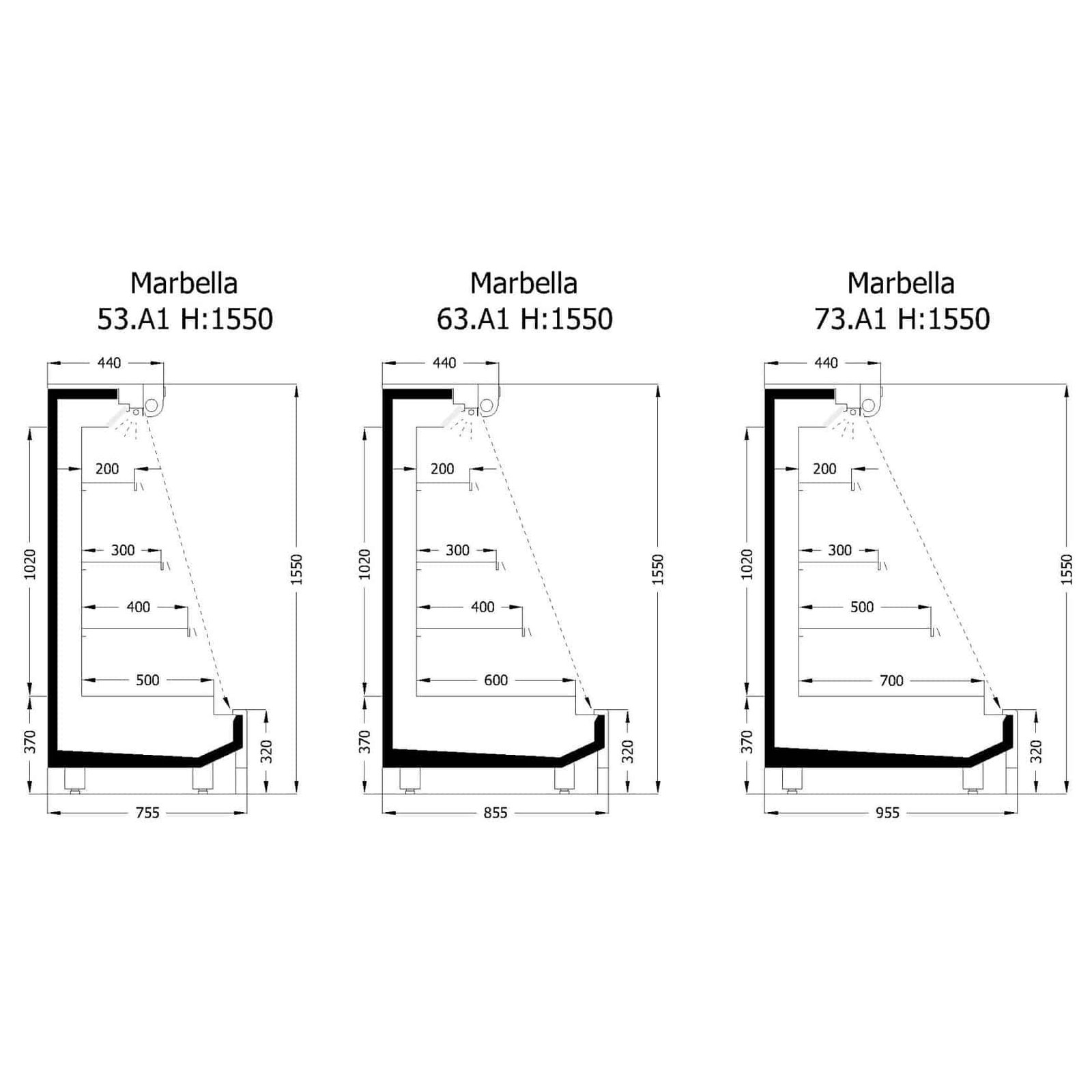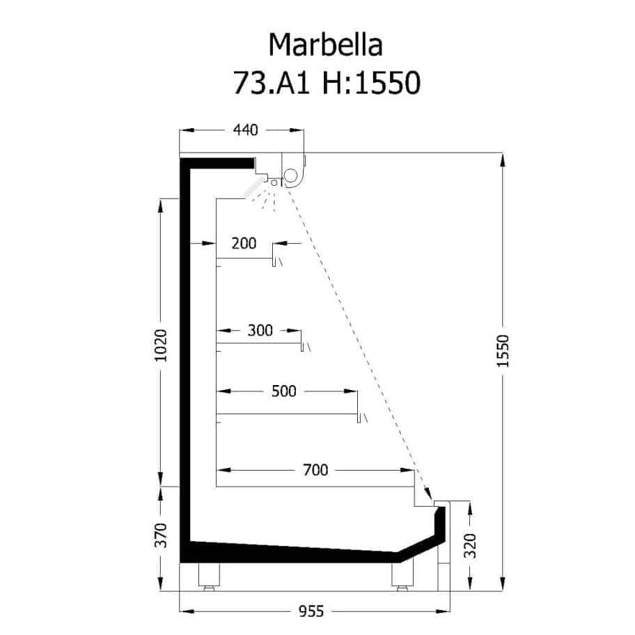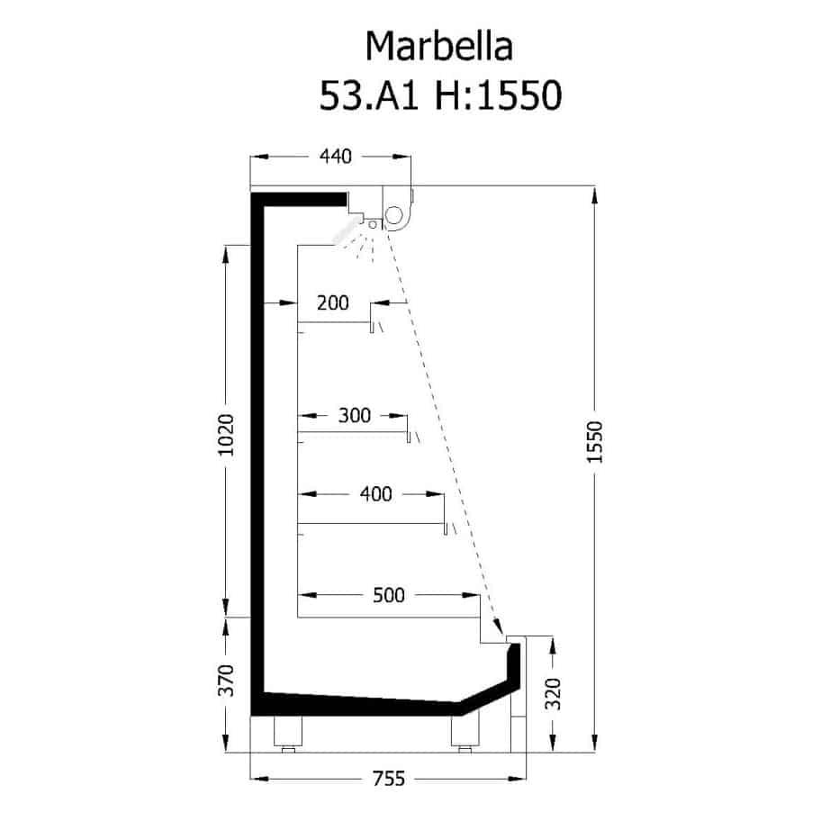 Ψυγείο Self Service χαμηλό ύψος 1,55μ. με υποδομή για απομακρυσμένο ψυκτικό μηχάνημα, με κουρτίνα νυκτός, Marblella, Inanc