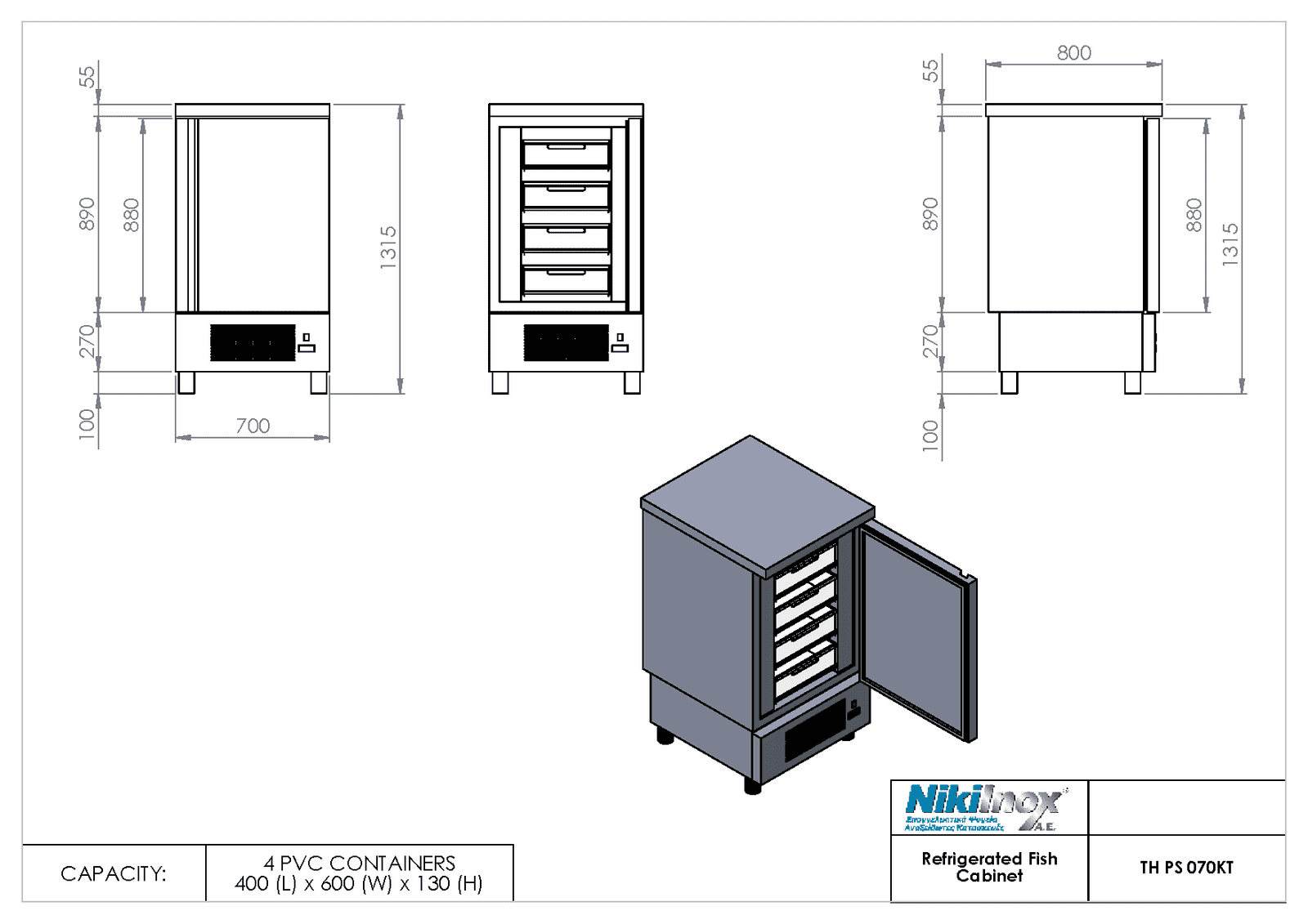 Ψυγείο θάλαμος αποθήκη ψαριών χαμηλό με 5 τελάρα TH PS 070ΚT Niki Inox
