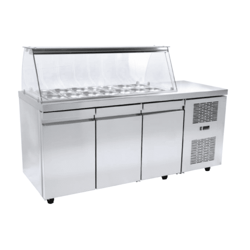 Ψυγείο βιτρίνα σαλατών με στατική ψύξη στην βιτρίνα,μήκους 185 εκ. SA-GN-185M με ενσωματωμένο ψυκτικό μηχάνημα Niki Inox