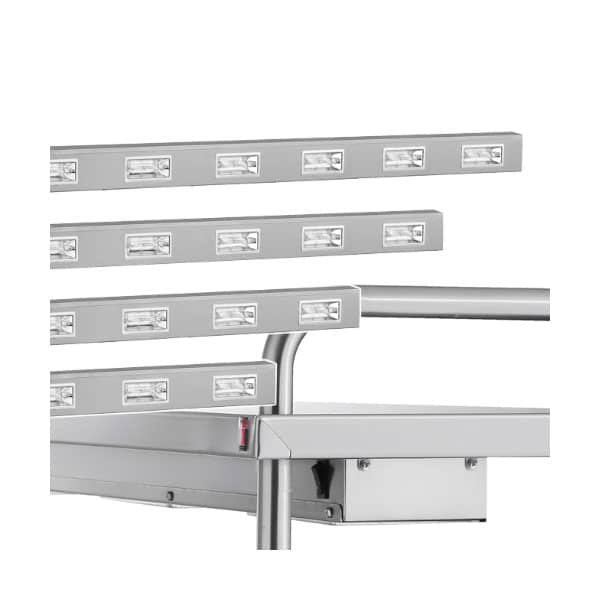 • Διαθέσιμα με 4 διαστάσεις με 3,4,5 και 6 λάμπες αλογόνου. Κάθε λάμπα είναι επαρκής για θέρμανση  σκεύους σε διάσταση GN 1/1 δηλαδή επιφάνεια 32,5×53εκ.