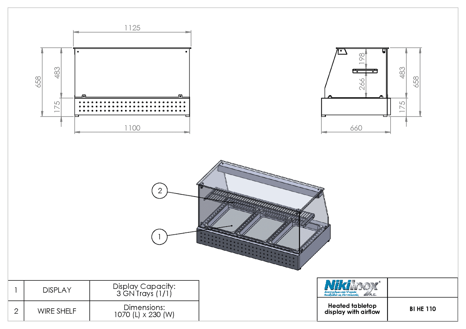 - Η βιτρίνα συνοδεύεται με 3 ταψιά GN 1/1 που τοποθετούνται στο κάτω μέρος.