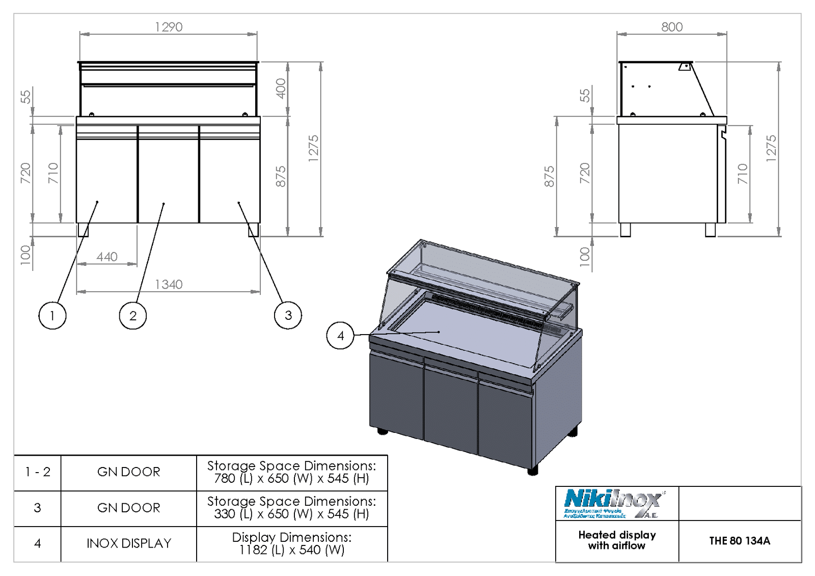Θερμοθάλαμος σφολιατοειδών επιδαπέδιος, θέρμανση με αέρα, με βιτρίνα μήκους 134 εκ. βάθος 80εκ. THE-80-134A Niki Inox