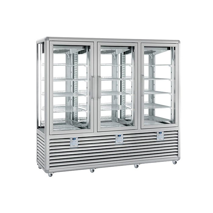 Τριπλή όρθια βιτρίνα διπλής ψύξης σειρά GLV Curve (+5/-20) CGL-1300 G2T/G2T/G2T Silfer